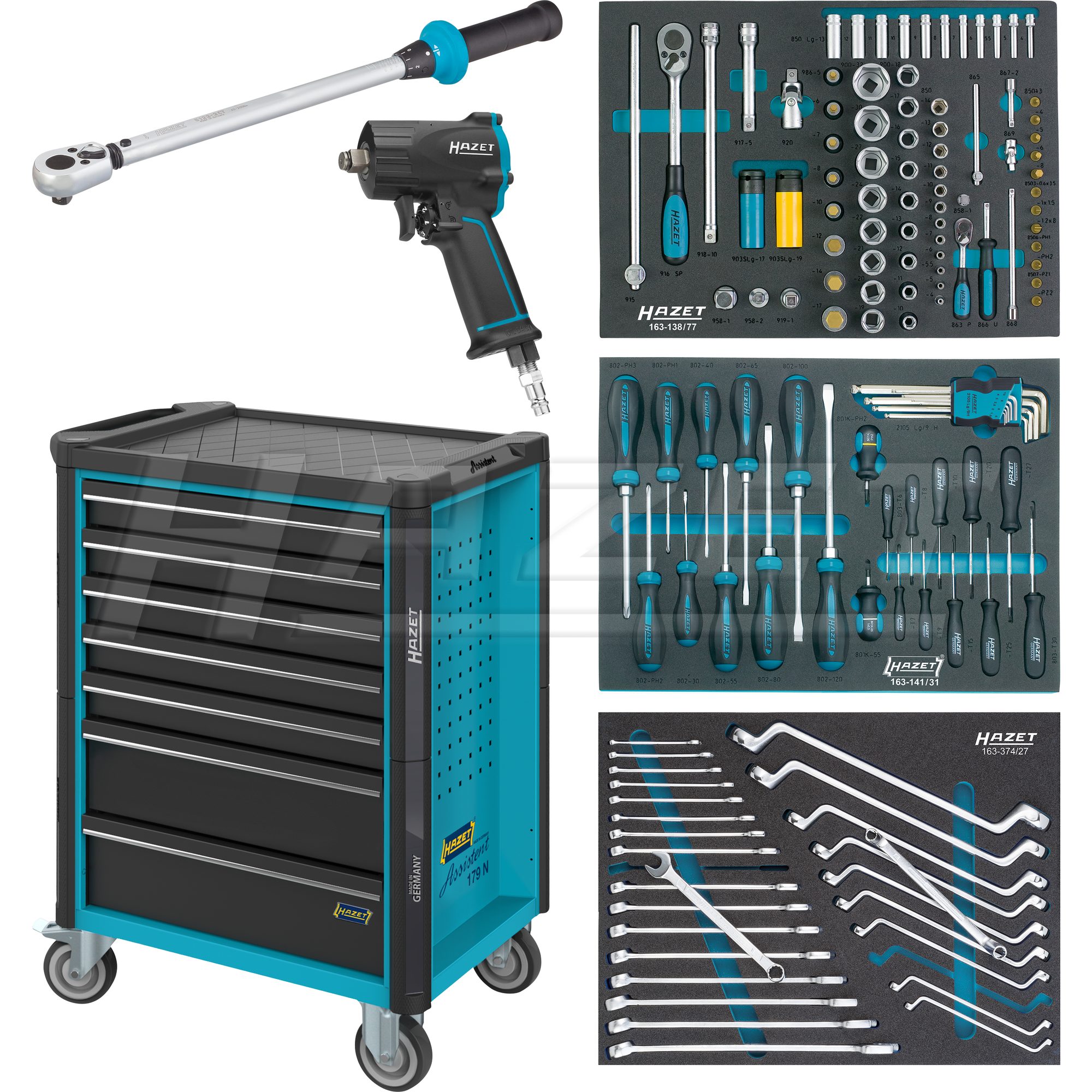 Z vozičkom pa dobite kot darilo tudi pnevmatsko pištolo HAZET H9012 M in moment kljuc HAZET od 40 Nm do 200 Nm.